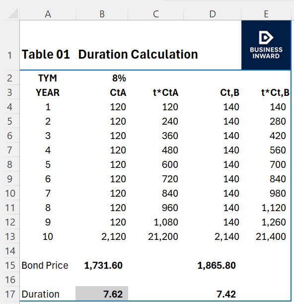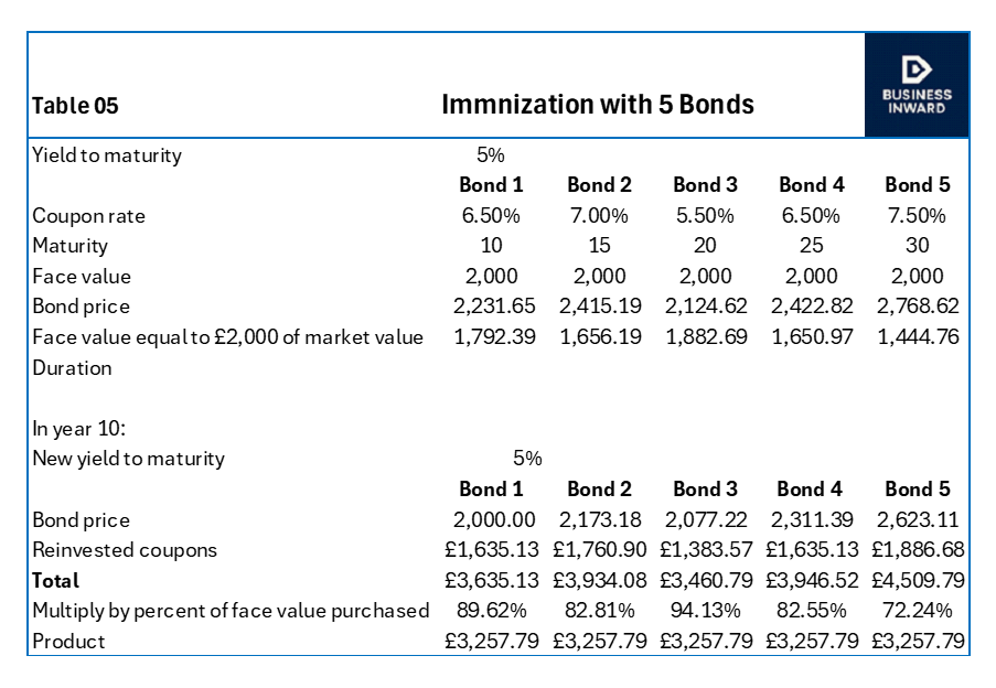 Note: From table 05 and 06 above, as the bond yield falls from 6% to 5%, the bond prices rise, the reinvested coupons fall, and the bond product price fall as well.