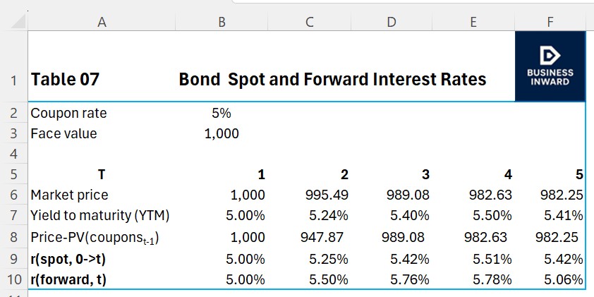 From Table 07, T2 (period) spot rate: =(($B$3+$B$3*$B$2)/C8)^(1/C5)