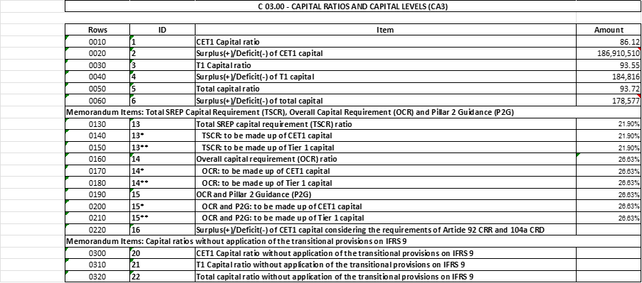 COREP Spreadsheets