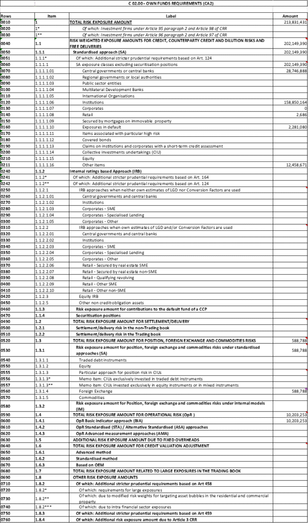See two sample of COREP spreadsheets: