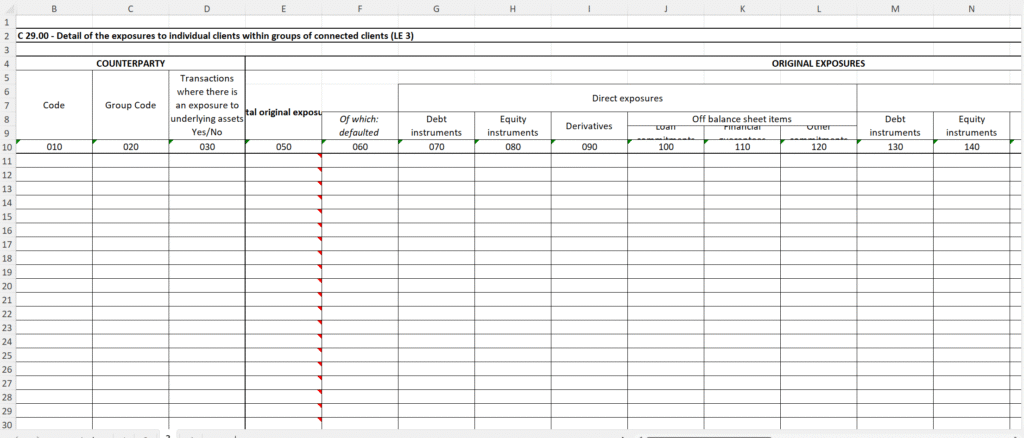 A large exposure is regulatory financial data submitted by banks and other financial institutions to supervisory authorities, such as the Bank of England or the European Bank Authority (EBA), to monitor their concentration risk. The reports elaborate the bank’s exposure to single counterparties or groups of linked clients, making ensure that these exposures stay within prudential limits (usually 25% of the institution’s Tier 1 capital) to avoid disproportionately large losses from a single counterparty’s default.