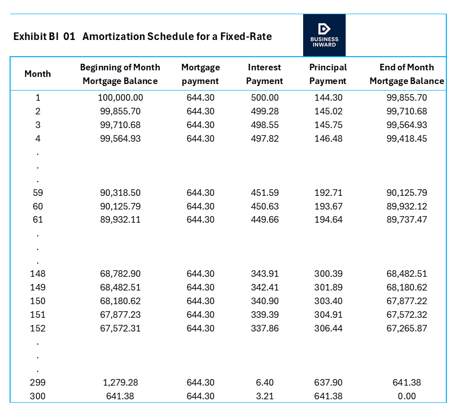 Johnson secured a loan of £100,000, 25-year mortgage (300 months), at a 6% annual nominal interest rate (a monthly interest rate of 0.5% (6%/12). The monthly payments for principal and interest.